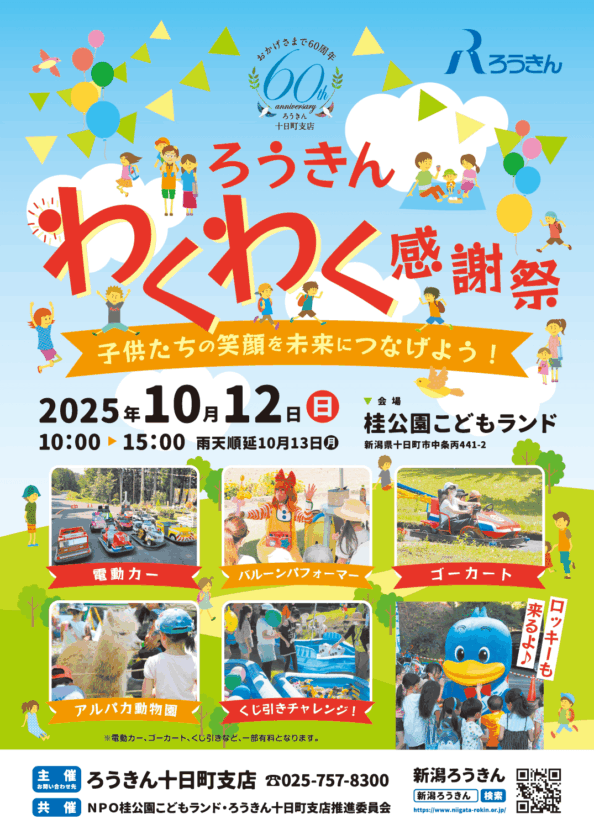 このイベントは、ろうきん十日町支店「創立60周年記念」とNPO法人桂公園こどもランド共催によるイベントです。